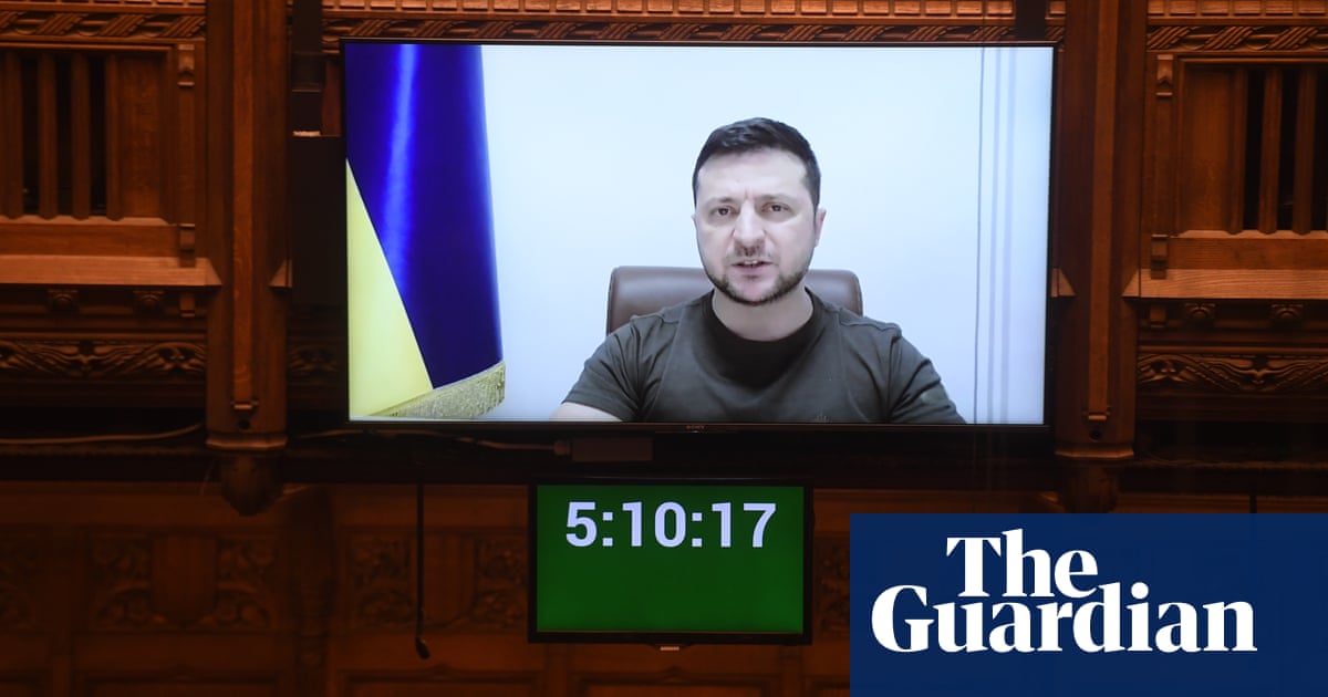 The Ukrainian president Volodymyr Zelenskiy has delivered a historic address to the House of Commons that was beamed into the chamber via a live feed as his country continues to resist invasion by Russia.