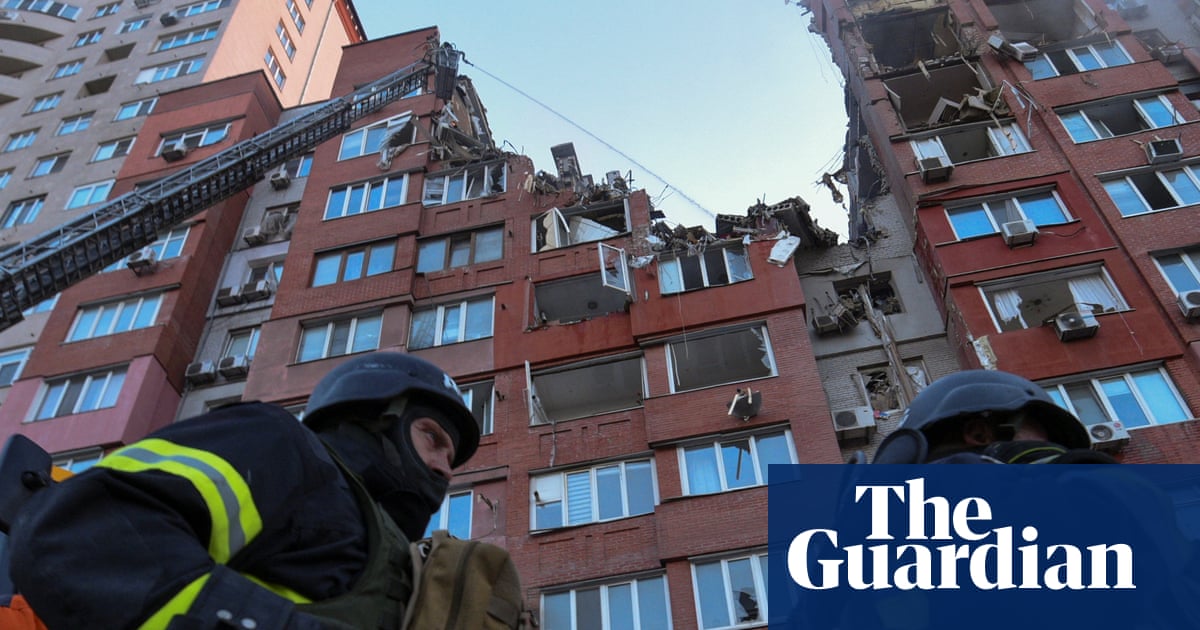 A Russian missile strike hit a nine-storey residential building in the central Ukrainian city of Dnipro on Friday, killing at least one person and injuring six others, officials said. The death toll would likely rise as more people remained trapped in the building, where four upper storeys collapsed as a result of the attack, said the interior minister, Ihor Klymenko. A photo posted on Telegram by the governor, Serhiy Lysak, and other images on social media showed a badly damaged building that had smoke rising from a gaping hole in its upper storeys. A seven-month-old infant was among the injured, Lysak said. Three people were in severe condition.